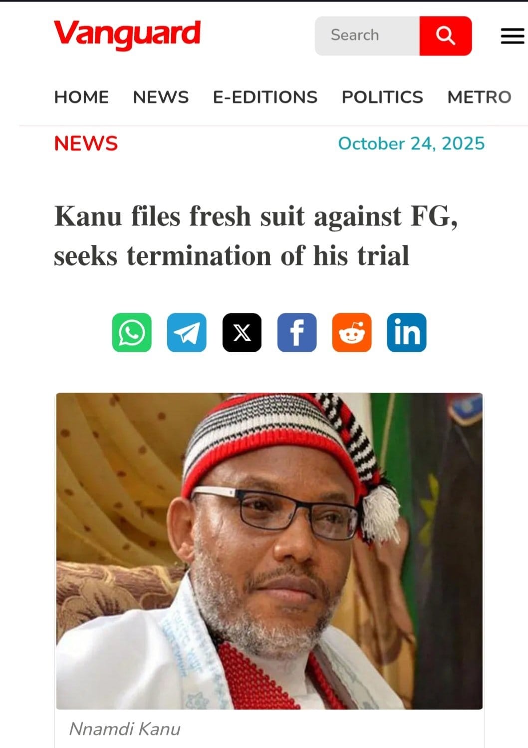 Mazi Nnamdi Kanu, has filed a fresh suit against the Federal Government, seeking permanent termination of his continued trial. The ...
